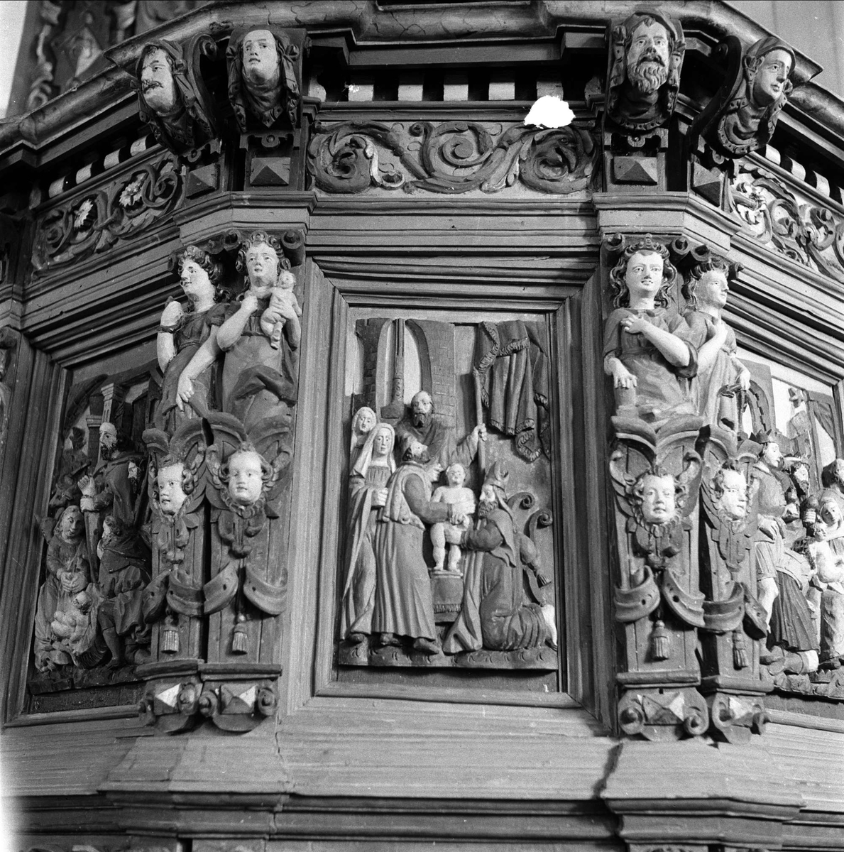 I veggene er det flere steder gjenbruk av dekorerte portaler og veggplanker med arkader og.